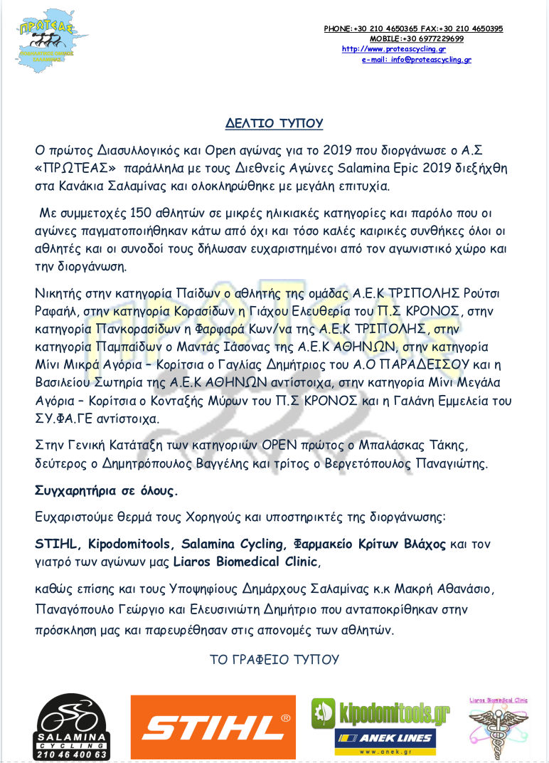 Αποτελέσματα 2019 Αποτελέσματα Διασυλλογικό 06-10-2019 Αποτελέσματα OPEN 06-10-2019 Αποτελέσματα Διασυλλογικό 17-02-2019 Αποτελέσματα OPEN 17-02-2019
